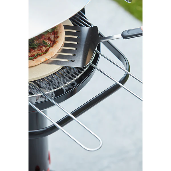 Grâce au système QuickStart de ce barbecue, l'allumage est simplifié. C'est très simple : il suffit de retirer la grille de fond et d'insérer du papier journal dans le tube d'allumage. Remettez ensuite la grille de fond en place. Ensuite, placez du charbon de bois ou des briquettes dans la cuve du barbecue. Après avoir allumé le journal à travers l'un des deux trous situés au bas de l'appareil, il convient de faire circuler l'air grâce à l'alimentation réglable au pied. Ainsi, l'air va circuler de bas en haut au travers des trous de la grille du fond. Quinze minutes plus tard, le charbon devient incandescent et il suffit d'ajouter du charbon de bois ou des briquettes pour que la cuve soit à demi pleine. Lorsque tout s'est transformé en braises, le barbecue est prêt à recevoir la grille de cuisson et les aliments. Le système QuickStop est infiniment pratique : avant de préparer le barbecue, remplissez la base d'eau. Lorsque le fond de la cuve a refroidi, retirez la grille du fond de la cuve avec une pince et faites tomber le charbon consumé dans le tube d'allumage : celui-ci va tomber dans l'eau, il ne restera plus qu'à vider le bas de collecte des cendres situé dans le pied.
